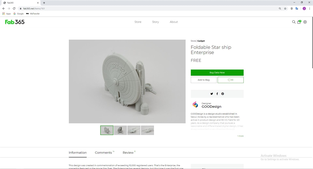 Fab365是一個3D列印模型的販售平臺,有許多可單次列印的3D圖檔,方便新手購買使用。大部分的模型雖然要付費,但高品質、可活動、細緻又有趣,非常適合3D列印成品收藏呢!