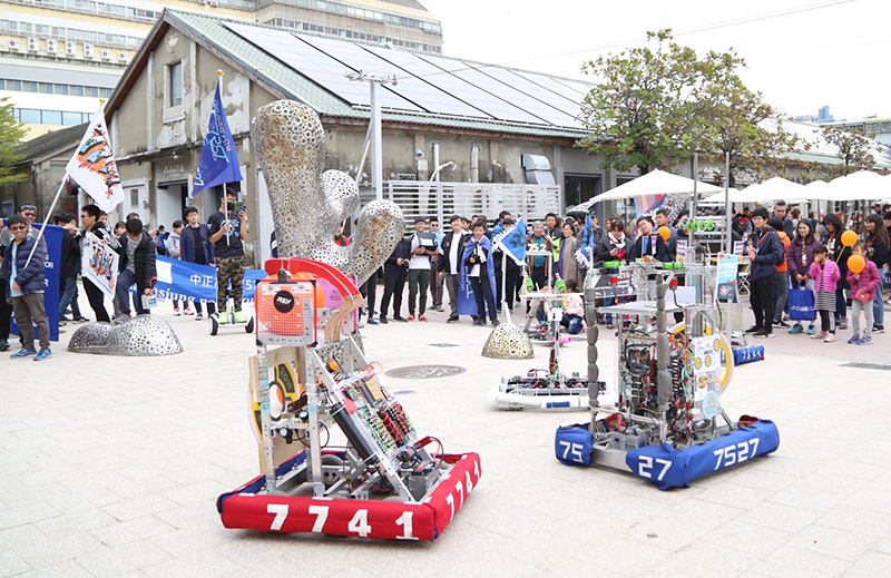 戶外廣場區(qū)除了展演舞臺以外,還有學(xué)生主導(dǎo)的機械車競賽,許多更加裝機械手臂,具備堆高、取物等操作能力,這些青年學(xué)子都是臺灣的後起之秀!
