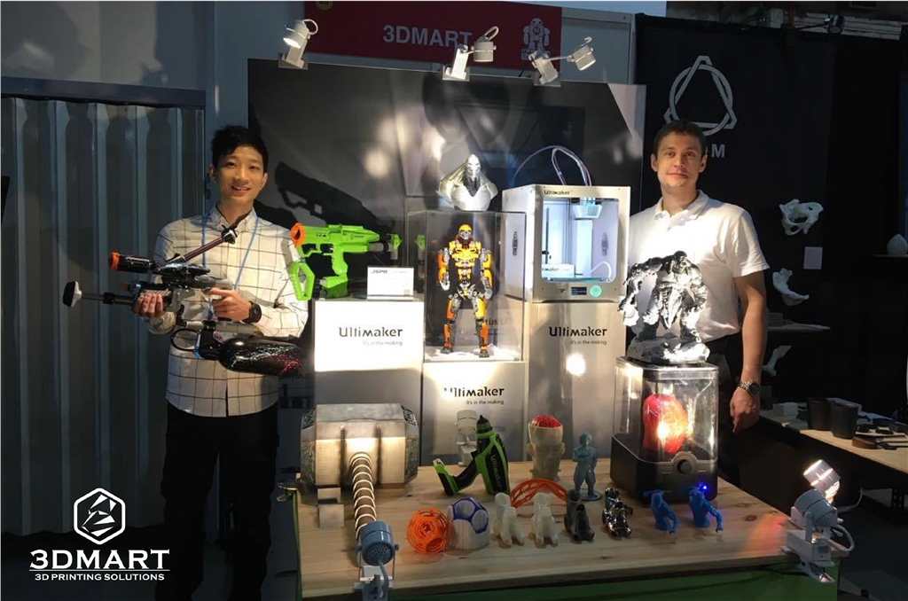 【展覽快訊】2017Makerfaire展覽圓滿落幕! 一年一度聚集各種充滿創(chuàng)造力的maker(創(chuàng)客)的大型盛會makerfaire,今年11/4-11/5於華山文創(chuàng)園區(qū)展出,已經(jīng)在 昨天圓滿結(jié)束囉,雖然這次遇上綿綿細雨和微涼的天氣,但仍然不減參觀者的人數(shù)與熱情。 就讓我們一起看看這次3DMART展出的樣品與機器吧! 這次帶的兩個機器分別是Ultimaker3 3d列表機與Polysher酒精拋光機,以及許多大小不同的樣品們! 現(xiàn)場有3d列印雙色的小電鑽。 雙噴頭設計才能做到的滾球設計,同時用PLA與PVA列印的設計,水溶性支撐材PVA完全融於水後的橘色滾 球樣品(左一)與未溶解前的藍色樣品(右一)。 吸睛的電玩角色-魔獸世界裡霸氣的杜洛坦,兇猛的樣子其實蠻嚇人的,你可以仔細看他身上的細節(jié), 不愧是用Ultimaker3d列印機所列印的,能將細部完整沒遺漏呈現(xiàn)出來。 這件需要分件列印,搭配PVA水溶性線材能輕鬆不須拆支撐,有興趣的可以到這裡購買與下載3D檔案。 最耗費時間的巨作-雷神鐵鎚,仿佛約好跟電影同時宣傳一般,其實只是我們自己喜歡就印的大玩具,列印時間 很長,需要拆成五個列印件,列印完後再依序做研磨、上色和黏合的工作,十分嘔心瀝血的作品,果然讓他在展 覽中成功吸引到很多人的目光,紛紛搶著要跟他拍照。 心動了嗎? 自己來印一把吧! 雷神鐵鎚3D列印檔案下載處 中間用壓克力罩著的就是上一篇文章有介紹過的機器人Endo啦! 非常顯眼的站在正中間讓大家欣賞 與JSPB合作的 3d列印管槍,特別在槍身零件做雙色列印並加入3DMART的LOGO,設計者林連詣也有來參展並和 我們的攤位合照唷~ 展覽期間有許多熱情與好奇的參觀者,我們的同仁都十分仔細的為各位做解說,希望讓大家更加認識3D列印技術(shù), 以及Ultimaker 3D列印機的特色。 介紹雙噴頭與PVA水溶性支撐材的應用 向參觀者介紹酒精拋光機做出來的成品效果 3DMART全體同仁在此深深感謝來參觀展覽與正在讀此篇文章的你,我們會持續(xù)努力提供更好的服務以及介紹最新 3D列印消息給您,未來也請大家多多指教囉。