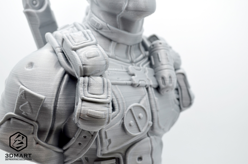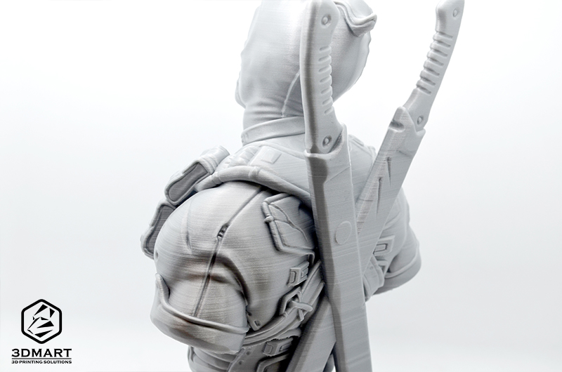 前陣子在漫威繼「復仇者聯(lián)盟」系列後上映的搞怪英雄電影「死侍」(Deadpool )造成一股風潮,可愛又迷人的正派(或反派)腳色亦正亦邪的風格有別於其他的正義英雄,特別受到觀眾喜歡?!杆朗獭沟姆b設(shè)定除了像蜘蛛人般的全套緊身衣以外,還有許多穿戴式配件,包括背帶工具包、長劍、防護盔甲、腰帶等,繼魔獸之後,這次要挑戰(zhàn)不使用支撐材的方式列印。(延伸閱讀:魔獸世界怒吼的杜洛坦。)