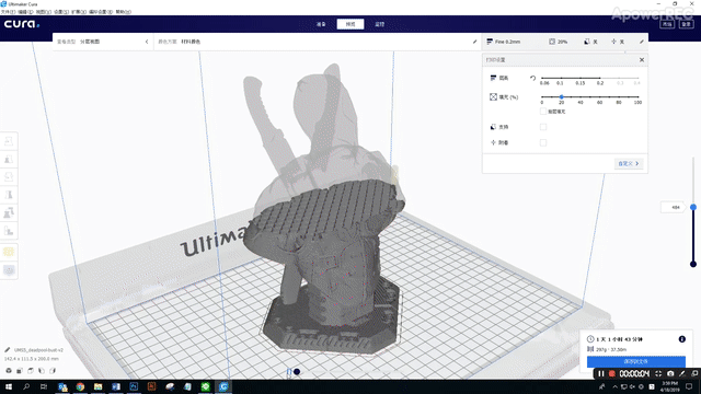 放進切片軟體Cura 4.0中,有可以預覽所有列印路徑的功能,以0.15mm的層厚列印約需一天左右,整體完成後體積約17x24x30cm。我們使用最新機型Ultimaker S5 3D列印機列印這個大型物件,圖中可以看到FDM特有的堆疊紋理,這是因成型技術(shù)的原理所產(chǎn)生,各位可以比較三種3D列印技術(shù)的優(yōu)缺點,選擇最符合需求的形式。(延伸閱讀:3種常見3D列印技術(shù)比較及整理。)