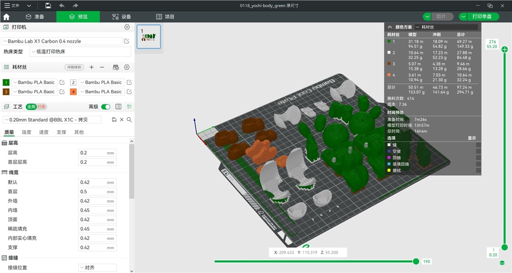這次列印是瑪利歐的遊戲人物,預(yù)計(jì)大概花了8小時(shí)左右,自動(dòng)換色超方便,Bambulab X1 Carbon列印速度令人驚艷!加速度500m/s,而且列印尺寸256×256×256 mm,可以一次擺很多物件同時(shí)印,完全不浪費(fèi)太多時(shí)間!