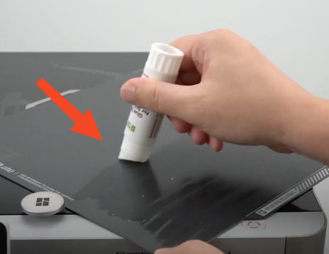 將列印板取下,使用原廠提供的熱床固體膠,塗上薄薄一層,再放回去對(duì)齊位置即可。