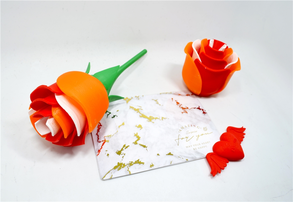 本次列印玫瑰花與花莖整體大約花14小時(shí)左右,玫瑰花尺寸約80 mm x71mm x 74mm,花莖約尺寸約62 mm x 62 mm x 140 mm。Bambu Lab X1 Carbon Combo列印速度可達(dá)500 mm/s,不需要耗費(fèi)太多時(shí)間等待!只要再放上一張飽含心意與感謝的卡片送給另外一半,簡單卻又獨(dú)特!三帝瑪(3DMart)陪您一起度過浪漫的情人節(jié)!
