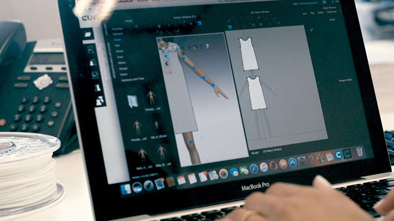 「ZER Collection」團(tuán)隊透過3D列印技術(shù),設(shè)計作品的基礎(chǔ)、裝飾兩種面料,基礎(chǔ)面料並非透過細(xì)小零件連接的方式來製作,而是直接3D列印出彈性布料,由於面料會直接接觸人體,團(tuán)隊考量穿戴舒適性的問題,特別選用TPU彈性軟料,產(chǎn)出每件服裝作品的基底衣料。