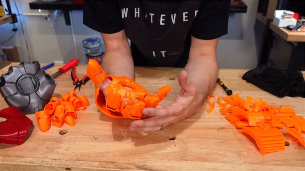 他提到最早的鎧甲模型通常是由一整隻手組成的,需要自己切割或分成兩半。 後來出現(xiàn)了 Walsh3D 的模型,它提供多種組裝方式,幾乎可以任意組合,而且你可以輕鬆地根據(jù)自己的需求進行調(diào)整。 Kersey 選擇的是鉸鍊式鋼鐵人手,因為它易於佩戴--你可以用磁鐵或插銷固定它,而且它還為電子設(shè)備提供了一定的空間。