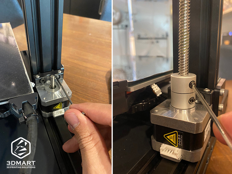 將T型螺絲桿組裝於Z軸電機(jī)零件後,使用工具將螺絲鎖緊。