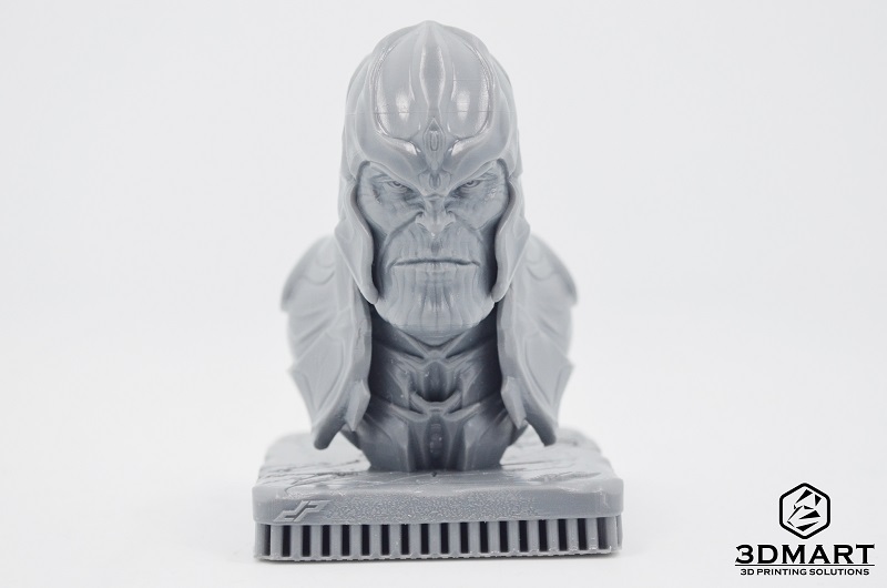 【3D列印快訊】一彈指就灰飛煙滅的超級反派-薩諾斯降臨啦! 大家看過電影-復仇者聯(lián)盟3了嗎? 是不是覺得好看的讓你很想在去二刷呢? 裡面讓人又愛又恨的大反派-薩諾斯,想必看完後都深深覺得他才是這部片的男主角吧! 前不久我們也使用了Flashforge hunter 光固化3D印表機列印火辣性感的小丑女3D列印模型,這次的大魔王薩諾斯 同樣使用此3D列印機來印製,讓我們一起看看列印效果吧! 首先在Flashprint 切片軟體中先將支撐架好,準備好後就可以開始進行列印囉~~~ 材料:Flashforge hunter標準樹脂F(xiàn)H1100(灰色) 層厚:0.05mm 列印時間:5小時46分 樹脂總量:97ml 剛列印完成的薩諾斯3D列印模型,真是氣勢驚人啊! 好兇的感覺。 小編怕怕,完全不想跟他對視,深怕被變成一團灰。(突然慶幸我們沒印出他的手………) 從各個角度看看,每個細節(jié)角度都非常細緻,尤其是臉部的細節(jié)表現(xiàn)。 修剪完支撐後,胸口處的衣服造型複雜度也難不倒Hunter 3d列印機,列印的完整度相當高。 最後在一張個角度的圖,左下那個地板龜裂可不是印壞唷,是圖檔本身就有的破裂造型,是不是對hunter的列印技 術更加欽佩了呢? 這次的分享就到這邊啦,謝謝大家的閱讀,我們會持續(xù)撰寫關於3D列印測試的分享文章,讓各位更加了解我們家列 印機的列印品質(zhì),敬請期待下次的3D列印模型! 下方提供給您這次列印的薩諾斯3D列印模型,要付費唷~~~ 下載點:www.gambody.com/3d-models/thanos-bust 提醒您從現(xiàn)在起至6月底前購買Flashforge Hunter 光固化3D列印機只要148800元(原價178800元), 讓你直接省下30000元,這麼優(yōu)惠的消息還不立即行動嗎??