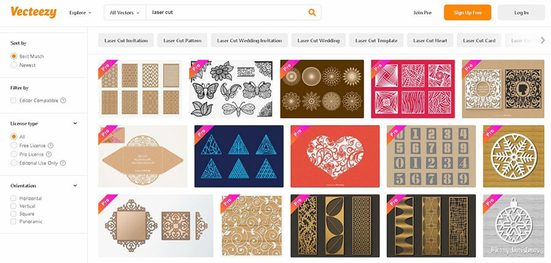 在Vecteezy網(wǎng)站上搜尋關(guān)鍵字時(shí),有向量圖、照片或影片三種類(lèi)型選擇,資料量非常大,且絕大部分都完全免費(fèi);可以下載向量圖檔,來(lái)進(jìn)行雷射切割,下載照片檔案也能直接進(jìn)行雷射雕刻,Vecteezy除了能用於雷射加工應(yīng)用,也能做為設(shè)計(jì)者日常的靈感資料庫(kù)。(點(diǎn)我前往)