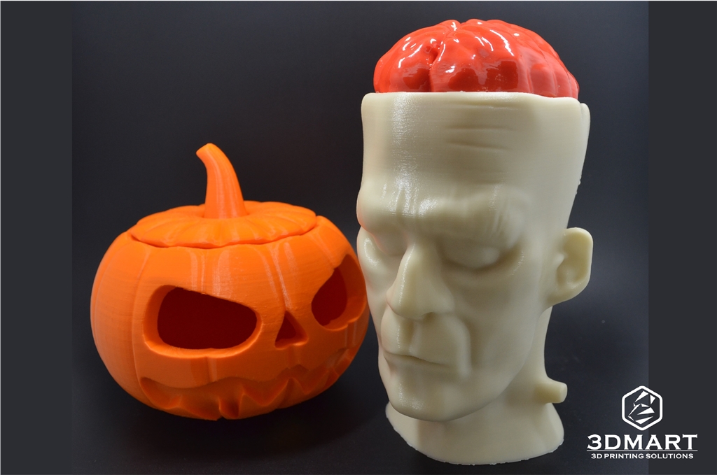 【3D列印應用】萬聖節(jié) 不給糖就搗蛋之嚇人小物 西方有趣的節(jié)日-萬聖節(jié)快到了,這天大家裝扮成各種鬼怪、穿著奇裝異服,小朋友會上街要糖吃的不給糖就搗蛋的 活動。這次我們用了Ultimaker 3Extended 3D列印機列印了一些與萬聖節(jié)相關的小東西來慶祝一翻,也給大家做個 參考。 先使用3d列印機來列印出南瓜吧! 南瓜主體與蓋子是分開列印的喔~~~ 第一個是長的可愛又邪惡的南瓜造型收納盒,蓋子能夠打開放入一些好吃的糖果或是一些小物。 用Ultimaker橘色PLA線材 3d列印南瓜顏色十分飽和,萬聖節(jié)必備 不用擔心眼睛空隙的問題,放入糖果不會輕易掉出來 還另外列印了一個看起來很兇的南瓜頭,嚇人多了吧! 第二個是科學怪人加上紅色血淋淋的腦,科學怪人是用colorfabb夜光線材列印,所以放在黑暗處會發(fā)出詭異的綠光 讓我們來看看放在黑暗處的效果吧! 很嚇人吧! 一回到漆黑的家看到他應該不小心嚇到尖叫吧?! 再來是血淋淋的腦,用紅色polysmooth線材列印,列印完成再搭配polysher酒精拋光機,創(chuàng)造如同人腦般光滑細緻 的效果。 . 放進酒精拋光機中,轉約10幾分鐘即可,想要有越光滑濕潤的感覺就將時間條更久一些。 我們之前也有酒精拋光機的開箱文章,有興趣可以在看更多3d列印成品的拋光效果。 科學怪人的頭上有座凹槽放置腦部,你也可以把腦移開放一些生活小物?! 雖說感覺會有點怪怪的,但也算是十分獵 奇有趣的擺飾品。 兩個萬聖節(jié)應景小物來張合照,你已經將自己的空間佈置出萬聖節(jié)氛圍了嗎?不妨自己列印一些有趣的擺飾來慶祝吧! 最後提醒您10/30起至11/13開始為慶祝三帝瑪三周年特惠活動,可以到文章觀看活動詳細規(guī)則,歡迎趁此機會好好 採購一波吧!