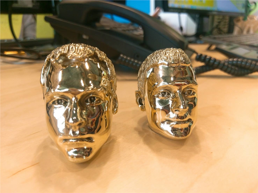 【3D列印快訊】輔助鑄造新材料-PolyCast 之前我們的文章也介紹過用SLA光固化列印機來列印鑄造用物件,再送至工廠進行脫蠟鑄造。 現(xiàn)在我們多了一個新法寶PolyCast列印線材,PolyCast是專門為金屬熔模鑄造(脫蠟鑄造)設計的材質(zhì),能夠搭配酒精拋光機完成拋光,並且在鑄造時可以完全燒熔來確保模腔的完整性。 介紹了那麼多,等不及想瞧瞧我們印了什麼吧? 什麼?! 居然是人頭,而且還十分就地取材的用公司同仁的頭像,製作方式為先用掃描機掃描頭像後產(chǎn)生的3D檔,接著進行3D列印人頭模型。 接著將列印出來的頭像放進Polysher 酒精拋光機中,準備開始來個酗酒之旅(誤) 看起來十分放鬆的旋轉(zhuǎn)頭像中,微醺的狀態(tài),等候幾分鐘的時間 微醺的頭像拋光完成,瞧他宛如新生的模樣,光滑細緻的表面 若這機器能用在真人臉上,醫(yī)美診所應該都會失業(yè)吧,實在是太神奇了! 最後完成的黃銅頭像成品 來看看其他鑄造的成品吧! 最後成形的黃銅頭像,可以看出都有十分光滑的表面 三顆金頭排排站 放顆老闆的頭當擺飾小物好像也不錯(? 現(xiàn)在只需使用此PolyCast列印線材就可以幫助你快速生產(chǎn)小批的金屬零件,免除投資鉅額才能製造的模具,3D列印的方式幫助你節(jié)省了10倍以上的金錢與時間 。 下次或許可以考慮將喜歡的人(or偶像)製作成頭像模型,然後放在家望著他癡癡地發(fā)呆?! 酒精拋光機 Polysher http://m.jcybusiness.com/en/shop/polysher