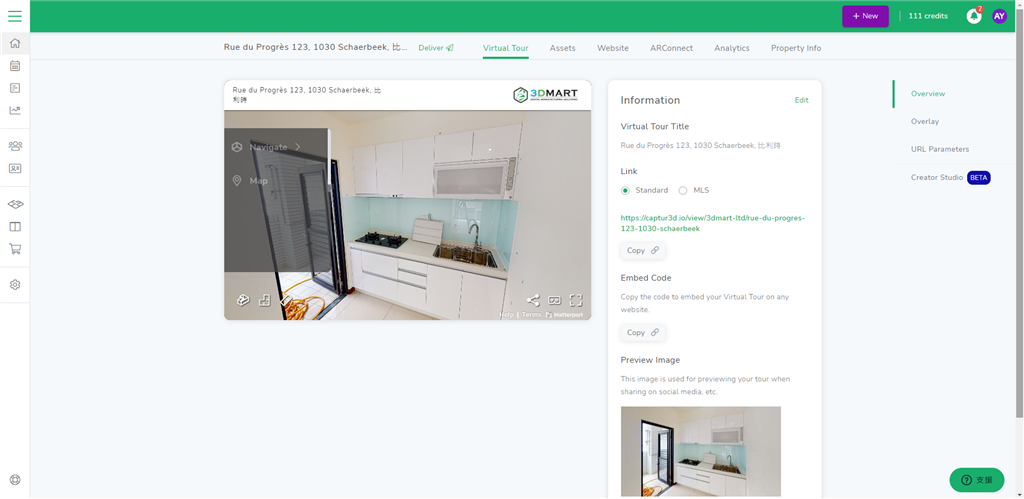 Matterport建立好3D環(huán)景空間,複製連結(jié)到此處,即可開(kāi)始進(jìn)行編輯。