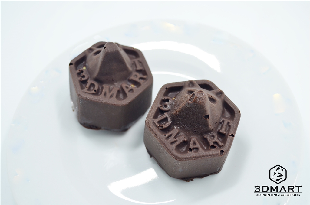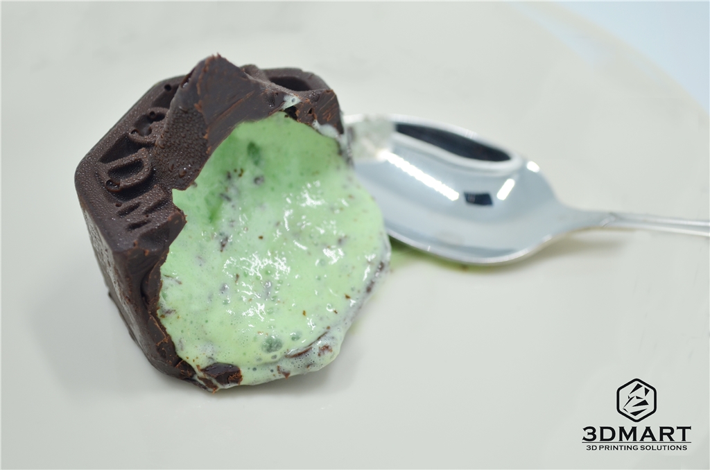 【3D列印快訊】中秋一同賞月 3D列印自己做月餅 你想的到用3D列印來做月餅?zāi)P蛦? 你可以不在侷限於市面上的月餅,做出你專屬的月餅,來看看我們3DMART 專屬的月餅吧~~~ 中秋節(jié)即將到來,每到這一天大家就會(huì)聚在一起,一同烤肉吃柚子和大吃月餅。 每年中秋節(jié)月餅都不斷推陳出新,有各種口味任君選擇,但若能自己做月餅就可以用更特別的口味,造型也能隨 自己喜歡的來製作。 於是今年3DMART決定自己做月餅來吃,口味當(dāng)然要做特別的,猜猜我們是做什麼口味的呢? 3D列印月餅製作流程 首先將我們?cè)O(shè)計(jì)好的3DMART熊造型的3d檔案用Ultimaker 3d列印機(jī)列印完成,月餅中間蹦出來的熊頭, 就是我們LOGO 裡的熊的造型,旁邊再加上文字,讓月餅更有整體性。 3D列印完成的月餅?zāi)P?br /> 將月餅?zāi)P头湃?a href="http://m.jcybusiness.com/en/shop/polysher">酒精拋光機(jī)蒸一會(huì)兒,讓表面更加平滑,帶模型全乾後,就可以製作矽膠模囉! 左邊為為拋光過的3D列印模型,右邊是用酒精拋光過的3D列印模型 矽膠模製作方式請(qǐng)參考之前蜘蛛人頭蠟燭文章,這裡就不一一解釋了,我們這次是用小紙杯協(xié)助製作。(小提醒: 這 裡使用的矽膠必須是食用級(jí)的唷!) 接下來就是主廚料理的時(shí)間囉! 大家可以選擇放自己喜歡的餡料唷,我們愛吃巧克力,所以就都選用巧克力,外層是 黑巧克力,內(nèi)餡是薄荷巧克力冰淇淋,非常新型的月餅口味,好像比較像蛋糕?! 看起來很好吃吧! 實(shí)際上吃起來也是十分美味唷~~~ 非常幸福的享用中,拍完照片立刻被大家吃光光,是有多餓?? 內(nèi)餡的巧克力薄荷冰淇淋 若是你手邊剛好有一臺(tái)3D列印機(jī)的你,趕快自己也來DIY 一個(gè)月餅(甜點(diǎn)?!)來吃吧!