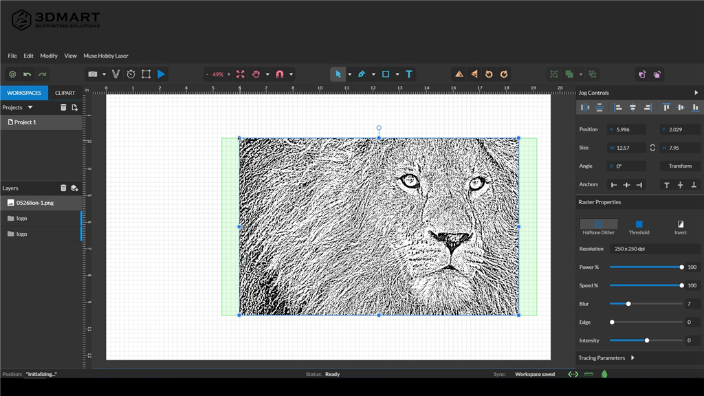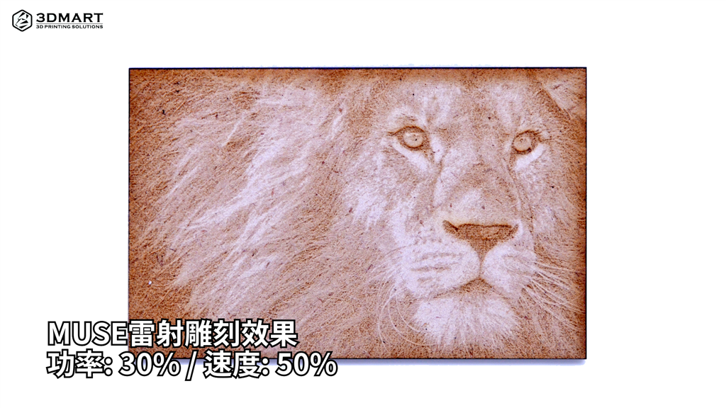 公平起見,我們皆使用3mm的木板,搭配獅子王的圖片來測(cè)試兩款雷射雕刻效果;獅王濃密的毛髮、威嚴(yán)的神韻、和細(xì)緻的輪廓,究竟雕刻效果如何接著往下看。