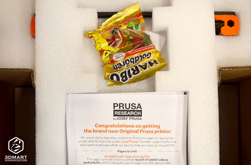 首先拆開箱子映入眼簾的是──軟糖一包?沒錯(cuò)!作為「自造者M(jìn)aker」或設(shè)計(jì)工作室的好幫手,提供幽默及熱量是必須的,原廠提供開箱軟糖、一邊咀嚼軟糖就能一邊將泡棉拿起來。