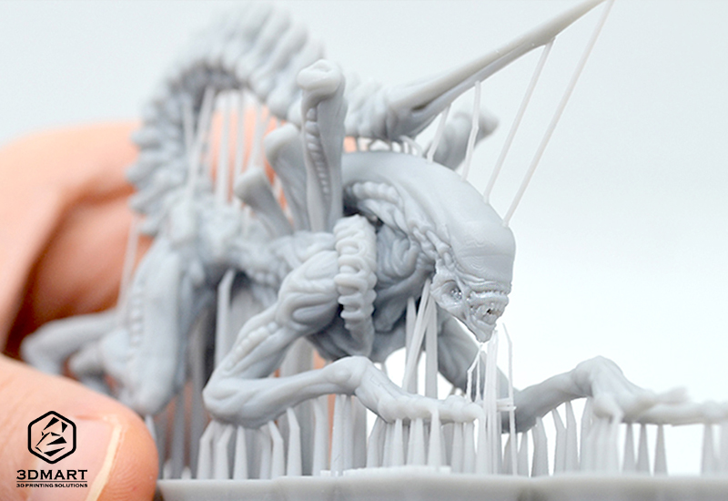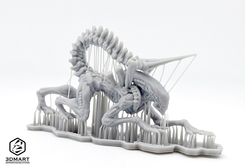至於大家最關(guān)心的實(shí)測效果,我們使用Phrozen原廠的類ABS灰色樹脂,經(jīng)過3小時的列印後「異形」就此誕生;初步從列印平臺上觀察,模型的細(xì)節(jié)和表面都很完整,支撐皆能順利生長。