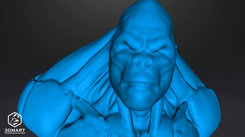 「EinScan SE」的掃描時間雖然較長,但不論是猩猩臉部的皺紋、耳朵深度、胸口盔甲零件、鎖骨凹凸…等,都有極為精細(xì)的效果。