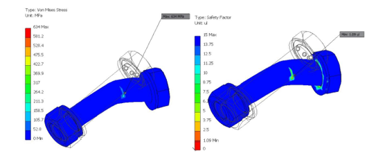 最後,ATEGROUP的工程師使用基於掃描的CAD模型進(jìn)行了模擬分析,以確定最佳的修復(fù)方案。通過(guò)他們的模擬軟體,他們複製了運(yùn)行條件並對(duì)數(shù)位輪轂施加了應(yīng)力因素,這樣他們就可以分析不同情境下每個(gè)零件的行為,評(píng)估潛在的故障點(diǎn),並確定最有效的修復(fù)方法。