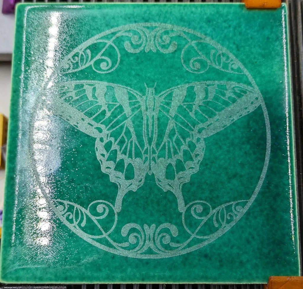 可以使用鋅在玻璃上雕刻,無論是40W還是2W紅外雷射都能用。非常容易清潔,且雕刻效果出色。清除起來就像刮彩票一樣簡(jiǎn)單。