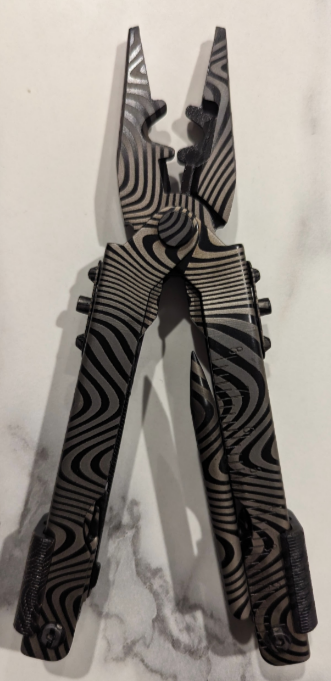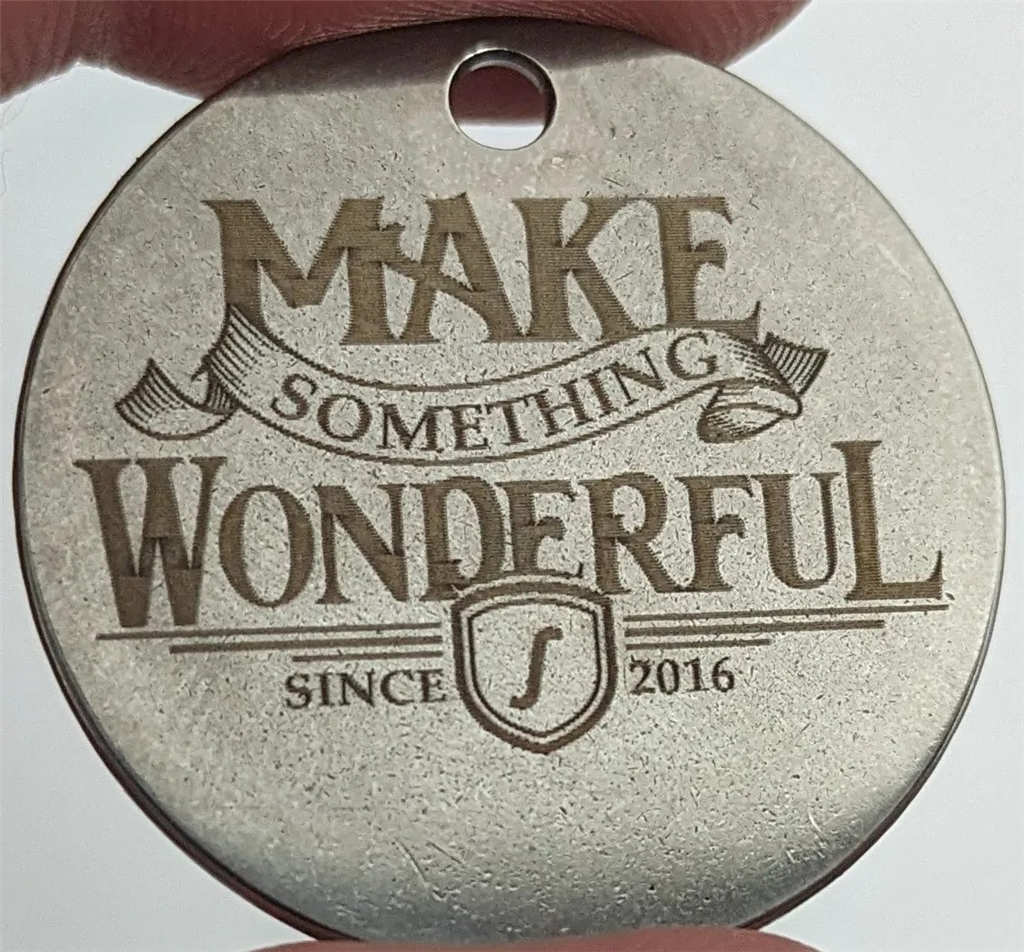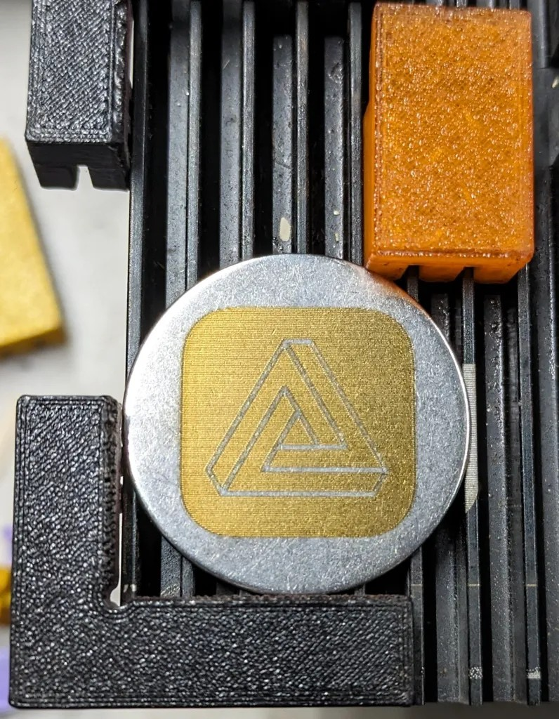 例如,Dave 進(jìn)行的測(cè)試:當(dāng)高度改變時(shí),雕刻質(zhì)量並未受影響。多功能刀的中心有一個(gè)穿孔工具,將工作區(qū)域提高了5mm,雕刻仍然清晰!在照片中,甚至親眼看,這給人一種工具平放在那個(gè)表面的錯(cuò)覺!這給了我一個(gè)有趣的設(shè)計(jì)想法,我很興奮能用雷射實(shí)現(xiàn)。像迷彩、錯(cuò)覺圖案和幾何圖案這樣的設(shè)計(jì)在這上面看起來都會(huì)很棒。