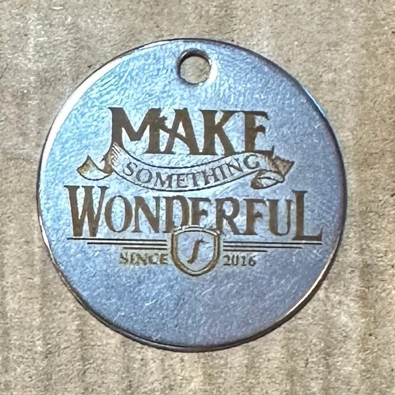嘗試用2W 紅外雷射在不鏽鋼、鈦、鉭和鈮板上生成雷射顏色。上圖是獲得的最好結(jié)果。它在不鏽鋼304上。顏色非常依賴觀看角度,從正面看主要呈現(xiàn)棕色。通常40W 雷射在同樣的鋼材上能產(chǎn)生更好的顏色,部分原因是因?yàn)榧t外雷射的光斑比40W 小。顏色實(shí)驗(yàn)表明,光束重疊的程度對(duì)生成的顏色有很大影響,因?yàn)榻饘傺趸锕鈱W(xué)干涉層的厚度很大程度上取決於任何給定區(qū)域看到的雷射能量總和。更緊密的光斑需要更密集的線間隔才能獲得顯著的光束重疊,30微米的紅外光斑需要約30微米或更小的線間隔。這接近雷射龍門可以移動(dòng)的最小間隔,因此在嘗試不同顏色時(shí)沒有太多操作空間。此外,這些小間隔導(dǎo)致填充區(qū)域的時(shí)間比40W 雷射長(zhǎng)得多。結(jié)論是,2W 紅外雷射模組在不鏽鋼上不適合進(jìn)行全彩雷射標(biāo)記。