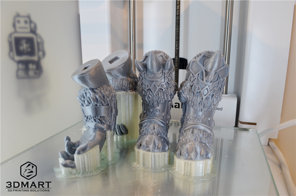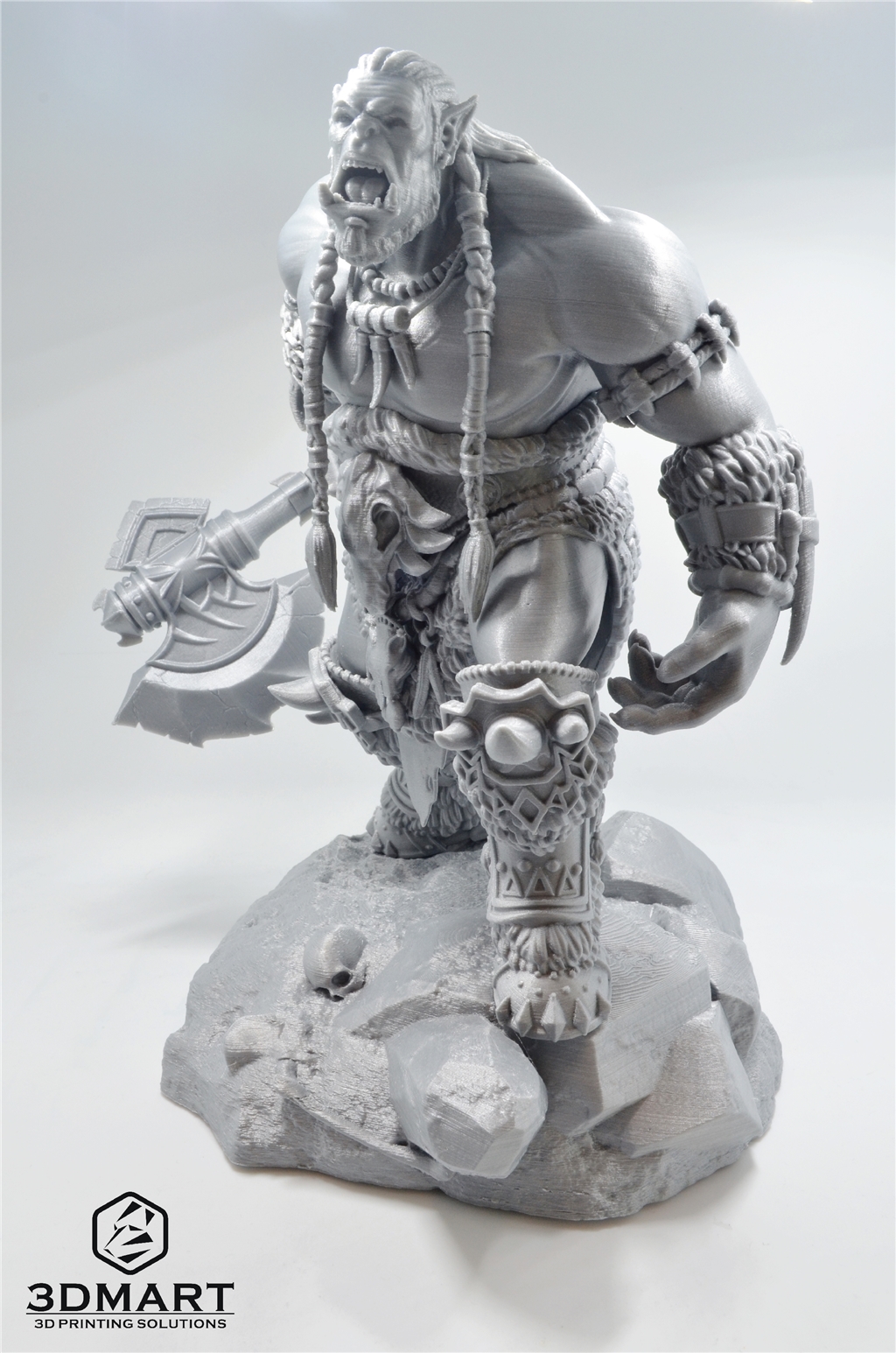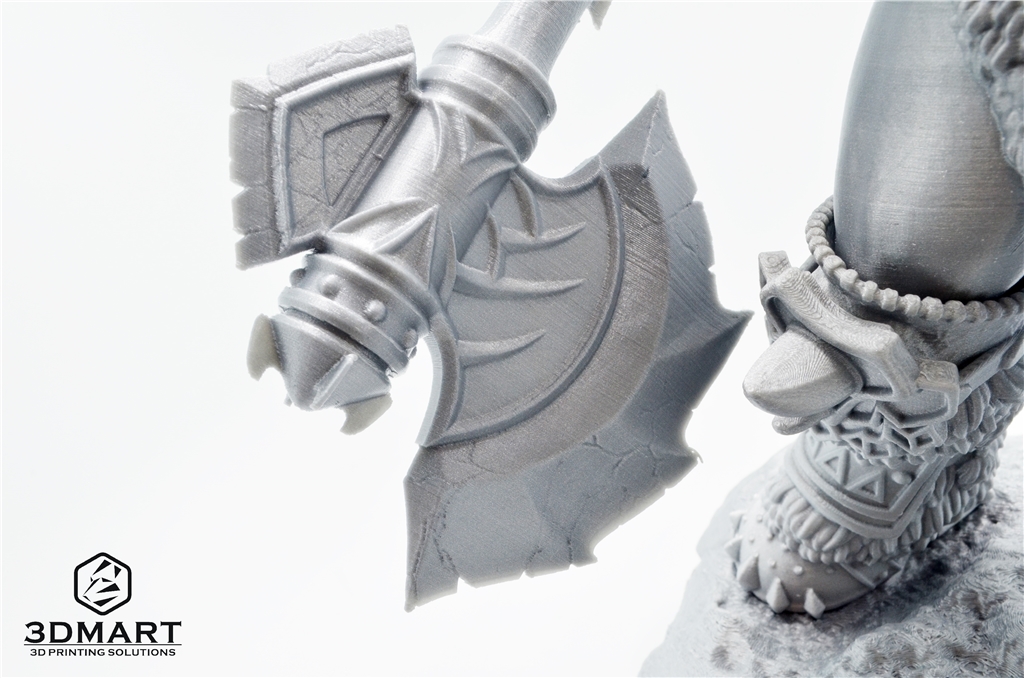 【3d列印應(yīng)用】玩過魔獸世界必知! 怒吼的杜洛坦 你喜歡玩電玩嗎? 若是電玩愛好者的話,那麼曾經(jīng)風(fēng)靡一時的魔獸世界,想必你一定有玩過吧? 在魔獸世界裡的厲害角色-杜洛坦,你還記得他嗎? 這次makerfaire2017展覽也特別帶他出任務(wù),十分吸引大家的目光唷! 就讓我再帶大家看看列印過程與細節(jié)照片吧! 這次我們都是使用Ultimaker 系列(左為Ultimaker 3 Extended 右為Ultimaker 3)的 3d印表機列印,兩臺同時一 起印更快速。 雙噴頭的設(shè)計讓我們可以使用Ultimaker PLA 銀色與Ultimaker PVA水溶性支撐線材,設(shè)定的部分將層厚調(diào)到0.15mm 、填充20%,全部列印完的時間需要150小時。 圖為主體上半身3d列印完成 圖為手跟腳3d列印部分 列印完成後,小心地從3d印表機中拆除,接著只要丟進水中,等待他慢慢溶解PVA支撐材的部分,溶解的時間約為 20小時。溶解完成之後就只要將各個零件組裝起來,就大功告成了! 接著讓我們一同欣賞列印的成品吧! 看看霸氣怒吼的杜洛坦,多威風(fēng)呀! 臉部表情與上半身的細節(jié)都有鉅細靡遺的列印出來 背面也有許多毛皮的細節(jié),也都通通沒漏掉 杜洛坦側(cè)面照再來一張,這胸肌真的很厲害! 嘿嘿 斧頭上的裂痕居然也印出來了,真是超級逼真的啦!!! 還看不過癮嗎? 我們還拍了360度照片,可以慢慢地自己邊轉(zhuǎn)邊看欣賞唷! 喜歡這隻魔獸世界的獸人-杜洛坦,也可以自行到gambody網(wǎng)站(下載點)購買唷!