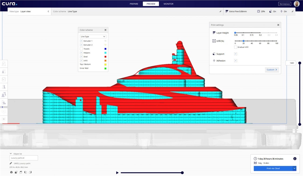 新的正交視圖使Ultimaker Cura更加符合CAD使用者的習慣,這項功能可以更方便比較模型的印前尺寸,目前已經(jīng)可以在Cura 4.2的「檢視>攝影機視角>正交」中使用這項功能。