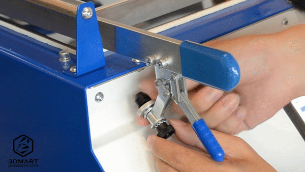 材料夾框架有兩個鎖夾,放上真空成型材料片後,依據(jù)材料片厚度旋轉(zhuǎn)調(diào)整螺絲鬆緊,就能確保抽真空過程中,材料片邊緣可以正確夾緊。