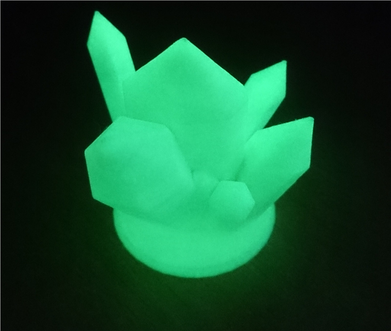 為了使成品得到更好的發(fā)光程度與延長發(fā)光時(shí)間,您可以將填充(infill)率提高(ex.100%),和使用高能量的光源(ex. UV燈)照射3D列印成品,或直接放在太陽下曬個(gè)幾分鐘。