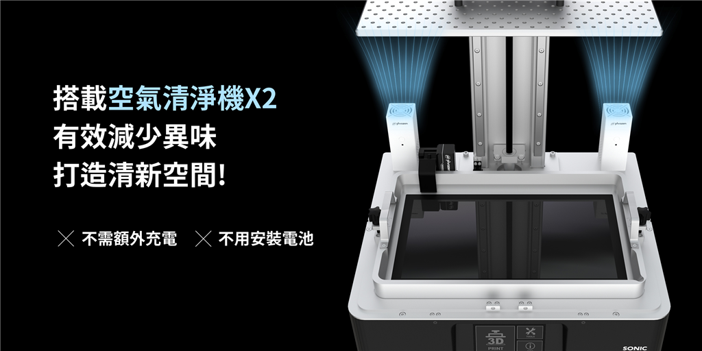 全新配備兩個(gè)可拆式空氣清淨(jìng)機(jī),不需額外充電也不用安裝電池,插上機(jī)臺(tái)即可使用,有效消除列印時(shí)產(chǎn)生的異味,雙倍舒適、雙倍清新!