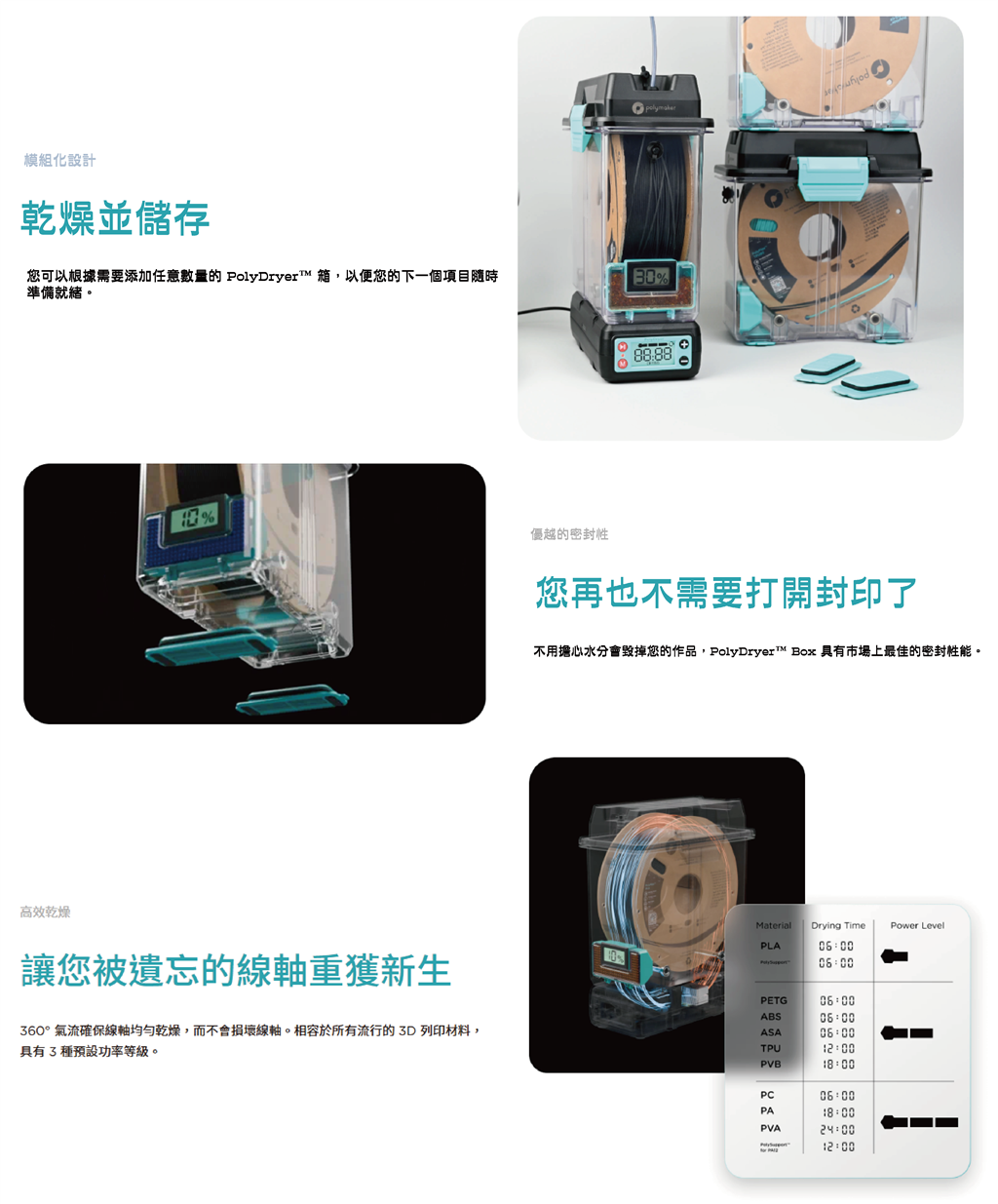 PLA / PVB / PETG / ABS / ASA / TPU / PA / PC / PVA / PolySupport™ / PolySupport™ 用於 PA12 |