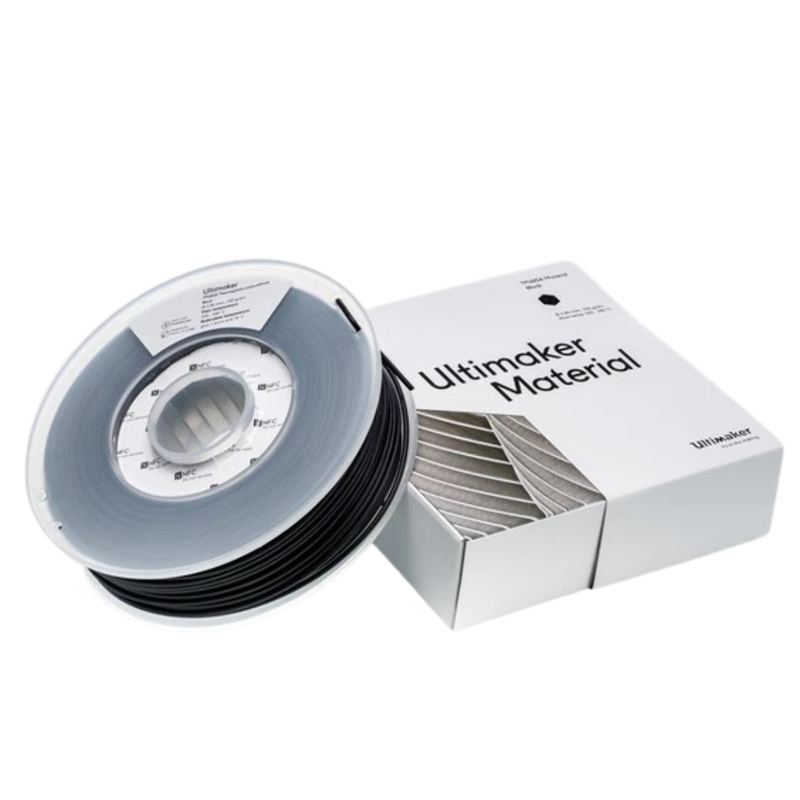 TPU 95A is a semi-flexible and chemically resistant material with strong interlayer bonding. It is also easier to print and prints faster than other TPU materials. Semi-flexible, abrasion resistant Ultimaker TPU (thermoplastic polyurethane) has a Shore hardness of 95A, an elongation at break of up to 580% and is semi-flexible, durable and chemically resistant.