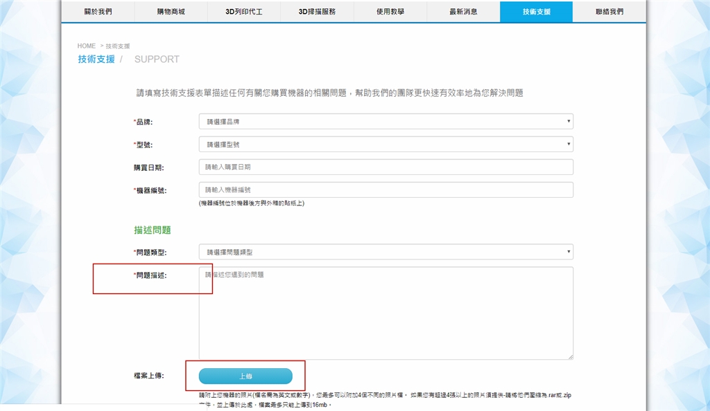 3. 為加速工程師判斷及處理,請(qǐng)?jiān)趫?bào)修表單內(nèi)附上以下資訊,並可直接上傳檔案: