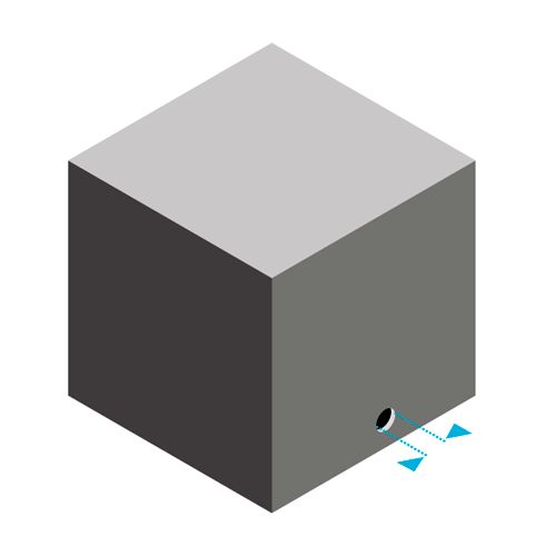 出粉孔 有時需要增加間隙或為粉末製作額外的出粉孔,以便在長距離移動鉸鍊等部件時將其移出,建議在模型中製作一個出口孔至少4mm的直徑。