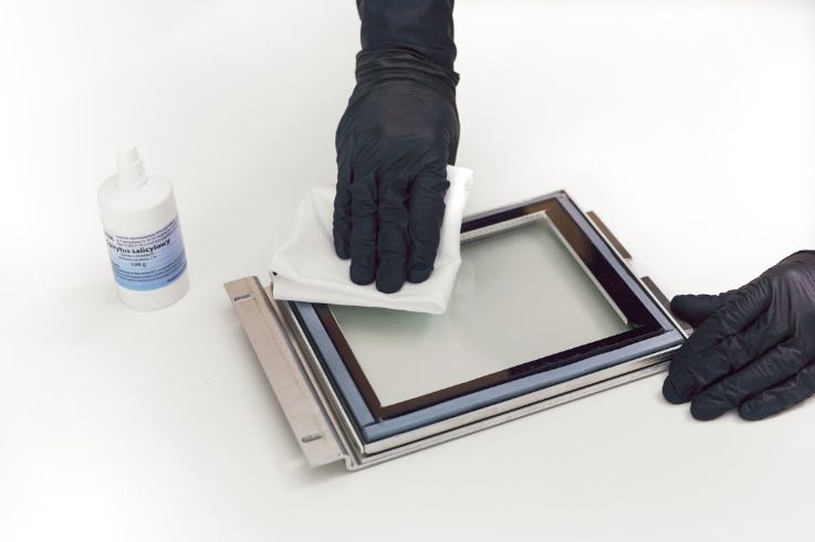 d.用酒精棉仔細擦拭玻璃表面(注意表面不可留下任何纖維),清潔兩面。