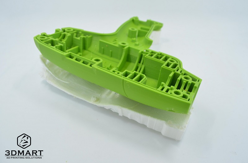 【3D列印快訊】Breakaway分離線材 開印文來囉! 繼水溶性PVA線材之後,Ultimaker又推出了新款的支撐線材Breakaway,到底它的特色跟用處如何呢? 今天就要來帶大家實際體驗列印搭配分離線材的好處囉! 首先使用我們雙噴頭的Ultimaker3列印機進行印製,這次挑選一個電鑽(半邊)的模型圖檔,下方的部分搭配我們的 分離支撐材,要記得雙料列印時一定要開塔唷! 這裡我們將設(shè)定調(diào)為層厚0.2mm、填充率15% ,這次的列印時間約為19小時。 列印完成後就可以開始拆支撐囉! 相信拆支撐對很多人來說都是噩夢一場,常常花費許多時間用工具又拉又拔的拆除,而且也不能一次性的將整塊移 除,通常都還要各別拆除,現(xiàn)在改用Breakaway作為支撐的部分讓一切變得輕鬆多囉! 拆解的步驟一樣是準(zhǔn)備一只尖嘴鉗,夾住支撐材的部分用力的與主體拉開來,分離支撐材的大部分會成為完整的一 片,就連凹洞處也一併被拉起拆除,只會剩下非常小部分的支撐需要剝除,拆除部分的表面也呈現(xiàn)出十分光滑的質(zhì)量。 跟PVA水溶性支撐材相較之下,不用等待漫長的泡水時間,更能節(jié)省時間,與一般線材做支撐時相比也省掉拆除與 打磨的時間。 上圖為 支撐拆除後的接觸表面,幾乎不需要做後製打磨處理的表面品質(zhì)。 上圖為 拆除的分離Breakaway支撐材 是不是覺得十分方便呢? 趕快買一卷來使用看看,你應(yīng)該也會迷上這種簡單拆除支撐的方式的,讓你下次拆支撐的體驗更加美好,省時也省力。