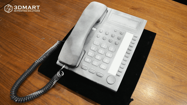 使用SHINING EinScan Pro 2X Plus掃描黑色的市內(nèi)電話,按鍵細(xì)節(jié)的精度表現(xiàn)都非常優(yōu)秀!完成3D掃描後,在常溫環(huán)境中,AESUB BLUE 3D掃描噴粉在3小時(shí)內(nèi)就自動(dòng)揮發(fā),電話按鍵側(cè)邊的隙縫、電路板上複雜結(jié)構(gòu)中的白色噴粉,在不需要清潔、不會(huì)破壞物件的情況下成功的自行消失,金屬、電子產(chǎn)品也都能正常使用。