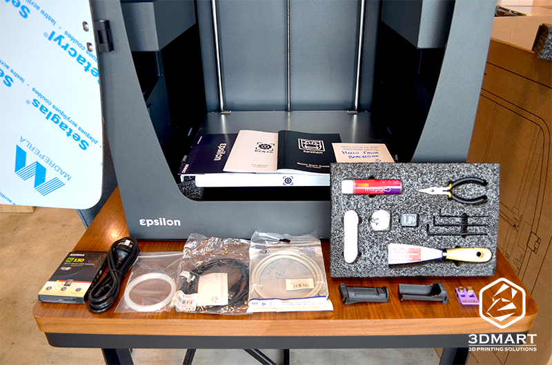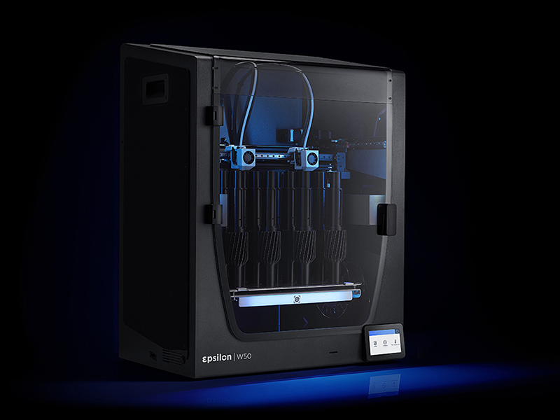 BCN3D Epilon W50 3D列印機(jī)是由鋁框結(jié)構(gòu)組成,黑色機(jī)身搭配玻璃門,首次開箱可以看到,玻璃門和上蓋都會有保護(hù)膜安全包裝;密閉式的列印空間,可列印的尺寸高達(dá)420 x 300 x 400 mm,設(shè)備啟動(dòng)後室內(nèi)會開啟藍(lán)光,看起來非常高級又有質(zhì)感!