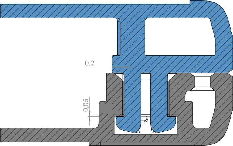 其設(shè)計(jì)原理是利用套筒的開(kāi)放性彈片設(shè)計(jì)能產(chǎn)生些微張力讓卡扣通過(guò),並利用倒鉤反向卡扣套筒;由於連接處在內(nèi)部,會(huì)被組件外殼完全覆蓋,因此如果間隙設(shè)計(jì)正確,物件會(huì)十分非常牢固和穩(wěn)定。
