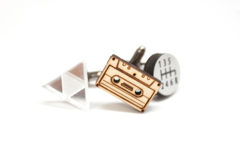由於製作新品變得更容易,不用擔心失敗或耗時,且雷射切割圖案精細,因此可以嘗試更多不同以往的設計;例如下圖這個別具特色的錄音帶造型袖扣,能同時結合袖扣的基本形式與設計的巧思。以往平均要花一小時進行手工切割及雕刻才能生產一個袖扣,自從有了Muse雷射切割機,她能在一小時內將多個袖扣一次切割完成,省下的時間則能讓她再度研發(fā)下一個飾品設計。