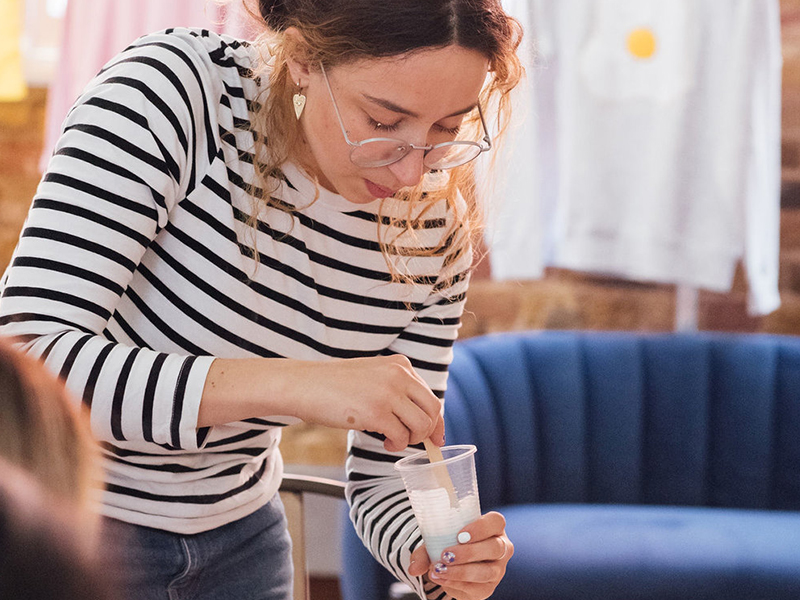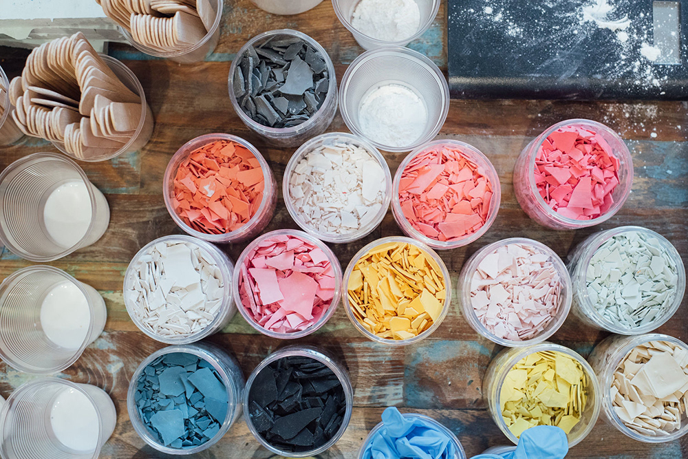接下來(lái)將凝固後的水磨石碎塊,依照自己的喜好調(diào)配用量、顏色,倒入Jesmonite樹脂中均勻攪拌;最後再將所有材料倒入真空成型的模具中,完全凝固後再經(jīng)過打磨加工,高品質(zhì)的自製杯墊就完成了!你也能舉一反無(wú)限,設(shè)計(jì)屬於你的各種容器、托盤、盆栽等居家裝飾品。