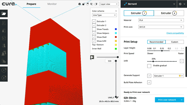 【3D列印軟體】發(fā)布Ultimaker Cura 3.3 beta測試版 Ultimaker Cura 3.3 beta已經(jīng)發(fā)布了。立即下載可發(fā)現(xiàn)一組新功能、外掛、錯誤修復(fù)及對第三方列印機的更多支援。 Ultimaker Cura 3.3 beta有哪些新功能? ●新字體,更好的螢?zāi)灰鬃x性及與Cura Connect的統(tǒng)一 ●外掛瀏覽器的新外觀 ●環(huán)形主塔提供更可靠的雙重擠壓體驗 ●支撐方塊,能更好地控制支撐材料的長出位置 ●新選項禁用Ultimaker 3的擠出機,解鎖「一次列印一個」的模式 請注意:我們已經(jīng)徹底測試過這個版本,它提供了很好的功能和改進。然而,它仍處於測試階段,我們不能保證與測試版與穩(wěn)定版本具有相同的列印可靠性。 如果您正在開發(fā)一個重要項目,我們強烈建議您使用Ultimaker Cura的穩(wěn)定版本。 UX的改進 更新字體。預(yù)設(shè)字體已更改為NotoSans,提升Cura Connect的易讀性和一致性。字體更新同時也修復(fù)了Mac OSX上一些渲染問題。 字體已更新為NotoSans 配置/同步按鈕。配置和同步按鈕現(xiàn)在可用於網(wǎng)路連接的列印機,以同步Cura Connect群組中的所有可用設(shè)置。 群組主機名稱將自動從API中提取,網(wǎng)路列印機和本地列印機在列表中會分開。 顯示連接列印機的兼容設(shè)置 設(shè)定易讀性預(yù)設(shè)值。 預(yù)設(shè)值會導(dǎo)覽您找出最重要的設(shè)置。一個小選單位於搜尋欄位的旁邊,可以輕鬆的設(shè)定易讀性預(yù)設(shè)值。 模型幫手。使用ABS、PC、PP或CPE+列印的尺寸大於15 x 15 x 15公分的模型會開啟提示,告知用戶它們能如何獲得最佳結(jié)果。 增加模型速度更快。 增加模型時速度明顯增加。 顯示不可設(shè)置檔案的工具提示。 如果建議模式下的設(shè)置檔案顯示灰色,工具提示會通知用戶原因。 Ultimaker 3的未放置材料時。當(dāng)Ultimaker 3上的材料沒有裝入擠出機時,它會顯示成「空」而不是「未知」。 優(yōu)化切片引擎 單一擠出機模式。 禁用Ultimaker 3上的擠出機進行單次擠出列印。 在右側(cè)面板中,右鍵單擊所需的擠出機,然後選擇「禁用擠出機」以禁用它。 通過點擊右鍵選擇「啟動擠出機」來重新啟動它。 列印設(shè)置檔案會針對啟用的擠出機進行優(yōu)化以及全部設(shè)定,例如列印平臺溫度,以實現(xiàn)更好的列印品質(zhì)。 使用單一擠出模式還可以為Ultimaker 3或其他雙擠出列印機提供「一次列印一個」的功能。 圓形主塔。 主塔現(xiàn)在是圓形的。 圓形主塔路徑使列印的動作更加輕鬆,結(jié)構(gòu)更牢固,層間黏著度更好,並且可以更好黏著在列印平臺,減少失敗的可能性。 圓形主塔讓列印噴頭運行的更平滑且更加堅固 連接的填充線。 網(wǎng)格和三角形填充圖形現(xiàn)在具有連接線以達成更穩(wěn)定的流動,更好的模型、剛性及減少對外壁品質(zhì)的影響。 支撐方塊。產(chǎn)生一個立方體網(wǎng)格來防止模型在特定區(qū)域產(chǎn)生支撐材料??墒褂脴?biāo)準(zhǔn)的調(diào)整工具縮放,旋轉(zhuǎn)和移動立方體來符合用戶的要求。 使用支撐方塊來防止特定區(qū)域產(chǎn)生支撐 真正的橋接。 新的實驗性功能可檢測橋樑,調(diào)整列印速度和風(fēng)扇速度以提升橋接部件的列印質(zhì)量。 更新CuraEngine可執(zhí)行檔案。 CuraEngine可執(zhí)行檔案現(xiàn)在包含專用圖示,作者資訊和證照。 使用系統(tǒng)庫的RapidJSON和ClipperLib。 應(yīng)用程序更新為使用經(jīng)過驗證的資料庫副本,減少了維護的時間(因為現(xiàn)在由操作系統(tǒng)負責(zé)),並減少了代碼量(因為如果已經(jīng)在用戶系統(tǒng)上,就不需要重新分發(fā))。 壓縮的gcode。 從Ultimaker Cura儲存的Gcode現(xiàn)在被壓縮以節(jié)省容量(使用gzip)。 改善列印行為 初始層流量。 「材料」類別中的新設(shè)定可以調(diào)整初始圖層流量,以便用戶能更好地控制。 最初移動運行的回縮。 縮回已增加到最初的運行移動中,減少在列印邊緣/裙側(cè)前,斑點出現(xiàn)在零件上的機會。 不必要的回縮。 消除螺旋模式下圖層變化的回縮,提高模型質(zhì)量。 更快的運行路徑。 至目前為止,路徑順序優(yōu)化器的工作原理是採用從一個點至另一個點的最短路線。當(dāng)使用梳理時,由於需要繞過障礙物,任何路線可能會需要更長的時間。 現(xiàn)在,可以使用精梳距離來取得更一致的結(jié)果。 更新外掛 外掛瀏覽器的外觀和感覺。 外掛瀏覽器已經(jīng)更新,具有更好的外觀和感覺,讓他與其他UI元素保持一致。作者姓名可點擊,開啟電子郵件直接聯(lián)繫作者以尋求支援。 現(xiàn)在也可以使用卸載按鈕來卸載外掛。 新的外掛。 Ultimaker Cura增加了三個新的外掛:可擴充的額外素材、列印溫度調(diào)整和關(guān)閉風(fēng)扇。 預(yù)熱擠出機。新功能可以在列印機監(jiān)測器中預(yù)熱。 將TweakAtZ重命名為'ChangeAtZ'。 腳本已被重命名為與其他腳本更一致。 導(dǎo)入XML材質(zhì)設(shè)置檔案檢查。 在導(dǎo)入Ultimaker Cura之前,現(xiàn)在檢查XML素材配置檔案以避免可能發(fā)生的問題。 修復(fù)錯誤 我們一直在努力研究各種錯誤的修復(fù)以獲得更好的用戶體驗: ●現(xiàn)在,填充密度可適用於兩臺擠出機,而不僅只是一臺 ●在0°C使用材料切片時,切片引擎會失敗 ●固定用戶失去網(wǎng)路連接後無法連接到列印機 ●使用win32com替