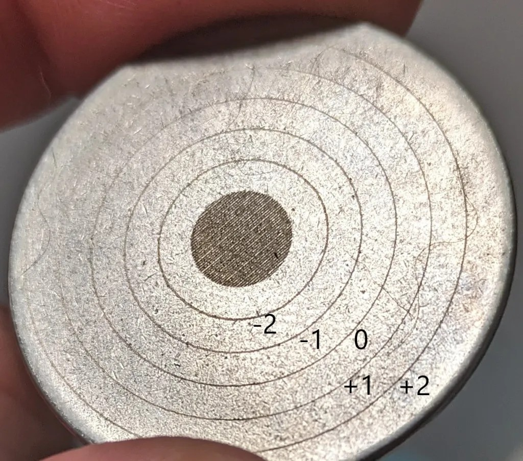 0 為焦點,-/+ 分別是焦點上下移動1mm。你可以看到光束在 -/+2 時稍微擴展,隨著景深變化。