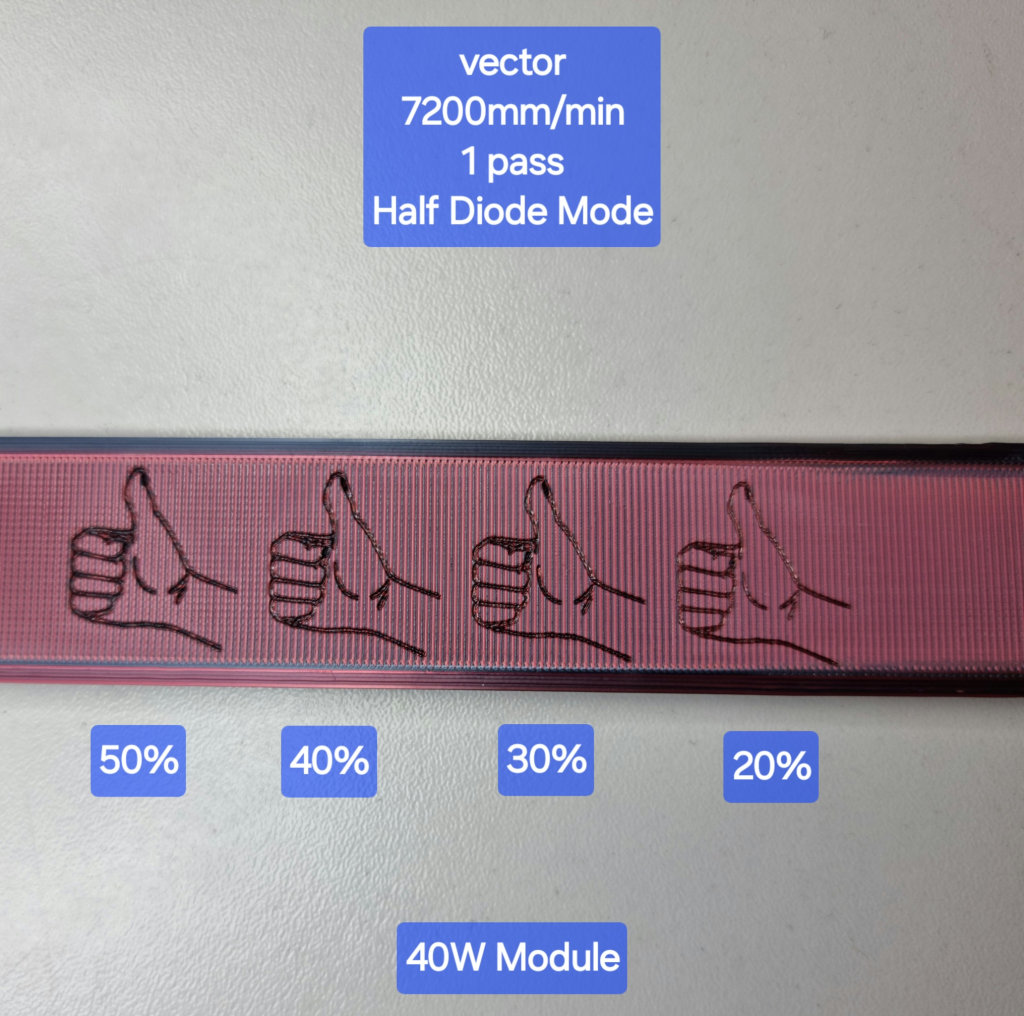 與藍光雷射不同,2W 紅外雷射對材料的熱影響最小。這一特性有助於減少材料變形和燃燒,保護項目的完整性。