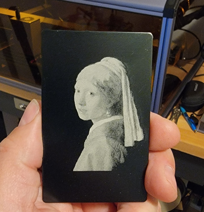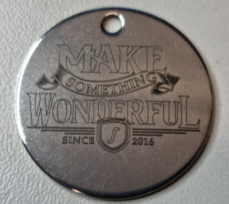例如,Dave 進行的測試:當(dāng)高度改變時,雕刻質(zhì)量並未受影響。多功能刀的中心有一個穿孔工具,將工作區(qū)域提高了5mm,雕刻仍然清晰!在照片中,甚至親眼看,這給人一種工具平放在那個表面的錯覺!這給了我一個有趣的設(shè)計想法,我很興奮能用雷射實現(xiàn)。像迷彩、錯覺圖案和幾何圖案這樣的設(shè)計在這上面看起來都會很棒。