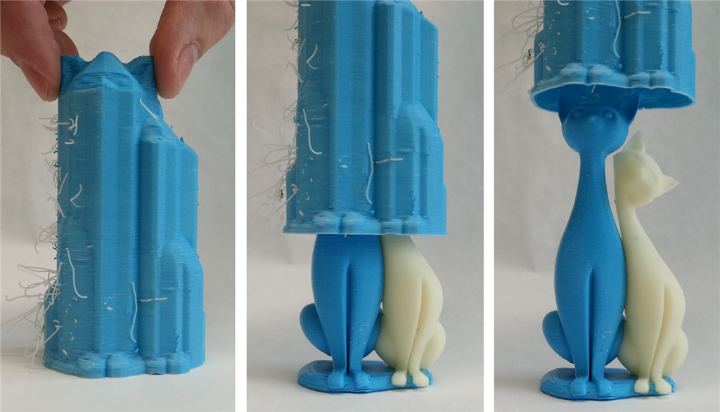 另一種方法是使用主塔--在主列印的同時(shí)列印另一個(gè)對(duì)象,為滲出或泄漏的非活動(dòng)噴嘴提供一個(gè)清除材料的地方,而不是在列印上。類(lèi)似的解決方案還包括滲出物防護(hù)罩,這種防護(hù)罩環(huán)繞著列印零件,當(dāng)噴嘴靠近列印零件時(shí),滲出的材料會(huì)在防護(hù)罩上被擦掉。