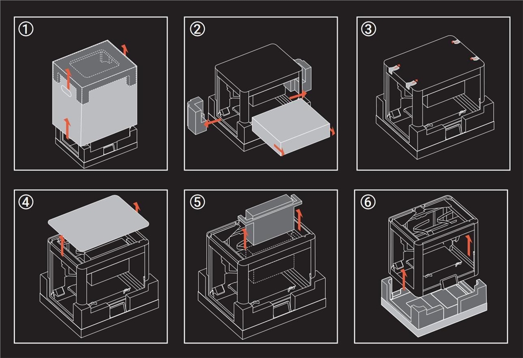 Snapmaker J1包裝非常特別,出貨即是成品機,只需自行安裝線材支架、門板、擋板即可。完全不需要從零組裝。建議按照外箱的圖示說明依序拿出所有零配件盒裝。(也可參照內(nèi)附說明書,皆有詳細敘述組裝流程)