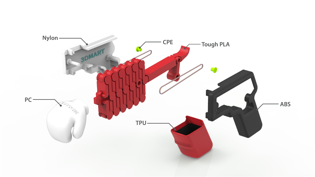 【3D列印應(yīng)用】六種線材大團(tuán)圓!複合材質(zhì)拳擊槍! 三帝瑪樂於為各位嘗試各項(xiàng)材料及3D列印實(shí)測,一般的樣品卡太單調(diào)又無法看出韌性和強(qiáng)度等功能,因此我們製作了複合材質(zhì)拳擊槍!各位小時候大概都看過這個玩具,別看這拳擊槍小小一把,它可是結(jié)合了六種材質(zhì)!每種材料都有各自適合的功能,另外,我們也在結(jié)構(gòu)設(shè)計中空觀景窗,讓大家可以清楚看到拳擊槍有趣的運(yùn)作方式: 主要的伸縮柵為Tough PLA,堅固性與ABS相似、不易脆化,適合用於功能性零件;組合式槍柄的部分為尼龍與ABS,這兩種材料除了堅固度以外,尼龍更具有彈性與韌性,因此足以承受支點(diǎn)的受力。槍柄套筒的部分則是具有伸縮彈性的TPU,能更好的適應(yīng)形狀變化;綠色的固定器栓則使用CPE,具有耐溫性、機(jī)械強(qiáng)度,能供物件和機(jī)械零件使用的特性,拳頭最常受到外力撞擊,因此選用高強(qiáng)度PC進(jìn)行3D列印。 本次皆使用Ultimaker 的原廠線材為主,通常包含不同材質(zhì)要考慮到不同的收縮率,但由於Ultimaker列印的尺寸精確,切片軟體Cura中也有預(yù)設(shè)參數(shù),因此這些零件的結(jié)合性依然非常好。其中當(dāng)然也少不了Ultimaker雙噴頭系統(tǒng)帶來的好處,讓我們能活用PVA水溶性支撐材料,放進(jìn)水裡就能獲得精準(zhǔn)尺寸和漂亮表面。 這些就是3D列印完成後的七個零件,現(xiàn)在就按照圖解方式進(jìn)行組裝: 首先,將橡皮筋和綠色的固定栓、伸縮柵放入把手的卡榫中,接著將另一邊完全對稱的橡皮筋和固定栓一併放上。 蓋上黑色的ABS槍柄,確定每個卡榫都準(zhǔn)確合上,最後再套入拳頭和槍套就完成囉! 對3D列印技術(shù)有興趣?三帝瑪春節(jié)過後即將開設(shè)3D列印講堂,現(xiàn)場也能看到這支拳擊槍喔!新春帶你印起來,線上報名快點(diǎn)我!座位有限、額滿為止! 我們還會持續(xù)和大家分享與3D列印有關(guān)的各項(xiàng)新資訊及實(shí)測,所有最新消息都會公布於我們的粉絲專頁! 追蹤粉絲頁、消息不漏接:https://www.facebook.com/m.jcybusiness.com/