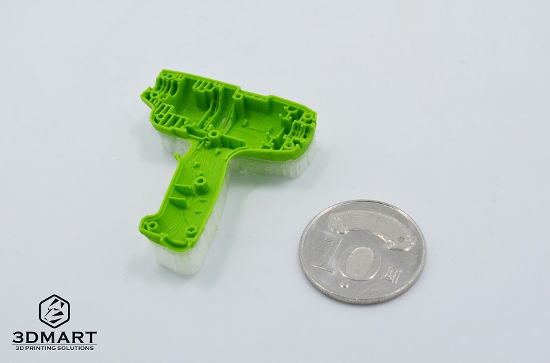 【3D列印快訊】超mini 模型好幫手0.25mm噴嘴測試列印分享 之前Ultimaker推出兩項最新產(chǎn)品,一個是最新的分離線材(支撐),在不久前有分享列印出來的模型成果, 另一個則是0.25mm的AA噴頭,這次就要來跟各位分享使用這個超細(xì)噴嘴所列印出來的精緻模型囉! 直接來看看用Ultimaker3 3d列印機(jī)單獨(dú)使用0.25mm的噴嘴列印出來的五角形立方塊,採用PLA透明線材印製出來 的幾何模型,最細(xì)邊線只有1.2mm,巧妙的一層一層堆疊設(shè)計,可以完全不用開支撐,一次列印到位。 列印完成的五角形立方體,可以放在手上好好把玩,像骰子的造型,手感覺癢癢的想丟骰子,莫非是過年時玩不夠? 覺得最細(xì)邊只印到1.2mm沒有發(fā)揮到0.25mm噴嘴的極限嗎? 沒關(guān)係,我們當(dāng)然也清楚你的疑慮,所以再印了一個 更小的模型,充分發(fā)揮噴嘴的優(yōu)勢。 超級迷你版電鑽模型,最細(xì)邊只有0.28mm,使用綠色PLA搭配PVA支撐材,BB噴嘴的部分建議可搭配0.4MM的 (※提醒您:Ultimaker 沒有推出0.25MM的BB噴嘴唷!) 實際列印出來的模型放在十元硬幣旁邊也顯得十分迷你,細(xì)節(jié)處都有印製出來! 太驚人了!!! 大家可能會不相信全部都有列印出來,為了證明列印的細(xì)緻度,我們搬出電鑽老爹(其實只是正常尺寸) 放在旁邊一起比對看看。 看到了沒? 沒騙你! 所有細(xì)節(jié)部分都有印製出來喔! 轉(zhuǎn)過來看看背面,融化支撐後的表面也非常的完整 剛好有列印迷你模型的需求的你,現(xiàn)在有了這個好法寶,就能夠幫助你印製出各種迷你人生裡必備的小物囉! 事不宜遲,趕緊入手一個0.25mm噴嘴吧。 商品頁面:0.25mm的AA噴頭 五角形幾何模型下載處:https://www.thingiverse.com/thing:2751126