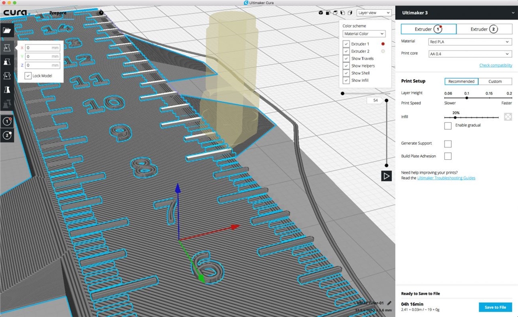 【3D列印快訊】Ultimaker Cura 3.1正式版發(fā)布 現(xiàn)在已經(jīng)推出Ultimaker Cura 3.1的穩(wěn)定版本了。新版本是奠基於所有Ultimaker Cura以前的版本上,具 有新的切片功能,調(diào)整和修復(fù)功能。我們要感謝每個(gè)花時(shí)間測試Beta版本的人,幫助我們創(chuàng)造最佳的用戶 體驗(yàn)。 更新重點(diǎn) •0.25mm AA 列印噴嘴的新產(chǎn)品,新的列印噴嘴具有超精細(xì)的線寬,可用在高細(xì)節(jié)的表面處理。 •新產(chǎn)品Breakaway,一種新型的乾燥後處理材料,可以快速輕鬆地移除。 •增強(qiáng)圖層視圖 - 通過彩色表示進(jìn)行速度的實(shí)時(shí)仿真列印策略,獲得更聰明的列印工作流程。 •快速相機(jī)控制 - 使用工具欄按鈕快速輕鬆地重新定位相機(jī)視圖。 •提高速度 - 處理,更換列印機(jī)或配置檔案的回應(yīng)時(shí)間更快。 •與HP 3D Scan Pro 5相容。 加強(qiáng)UI 切換配置檔案速度更快速。之前在Ultimaker Cura複製和移除配置檔案可能需要一段時(shí)間,最新版本現(xiàn)在能夠立 即切換。 選擇列印機(jī)更快速。移除印表機(jī)更即時(shí)。沒有反應(yīng)遲緩的畫面。 處理速度更快。計(jì)算法線、載入模型和切片時(shí),速度提高5 - 10%。 快速相機(jī)控制。新按鈕已添加到介面上,可以快速重新定位列印平臺上的攝影機(jī)視圖。這包括等軸測視圖,前視 圖和左/右側(cè)視圖。 從左到右:等軸測視圖,前視圖,上視圖,左視圖和右視圖。 圖層視圖。現(xiàn)有的圖層視圖已更新,現(xiàn)在有新增一個(gè)模擬列印策略的虛擬列印噴嘴。可以用來預(yù)覽填充和牆壁的 列印順序,以及避免運(yùn)行順序影響造成懸垂的狀態(tài)。已新增圖層路徑滑軌來瀏覽所選圖層的列印策略。 熱鍵使用者能夠在“層”視圖中進(jìn)行導(dǎo)覽。上下箭頭滾動(dòng)以瀏覽圖層,左右滾動(dòng)來瀏覽圖層的步驟。按住Shift + 箭頭鍵將所有方向增加10。 虛擬噴嘴顯示每個(gè)圖層的列印策略 進(jìn)料量可視化。進(jìn)料量可視化已新增到圖層視圖顏色方案選擇器。進(jìn)料量由相應(yīng)的顏色作表示,從藍(lán)色到紅色。 用藍(lán)色表示20mm / s的速度(例如列印物件的第一層),範(fàn)圍為250mm / s的速度(例如列印噴嘴的行進(jìn)方式) ,用紅色表示。使用此功能可以讓用戶了解每個(gè)模型零件的速度,能更好地控制列印物件。 進(jìn)料量可視化 在平臺上鎖定模型。移動(dòng)工具有一個(gè)新選項(xiàng)來鎖定選擇的模型到平臺。鎖定時(shí),模型不能在X,Y或Z方向移動(dòng)。 運(yùn)行。運(yùn)行列印噴嘴在螢?zāi)坏目刂葡乱苿?dòng)。當(dāng)通過USB連接時(shí),Ultimaker 2+和其他RepRap印表機(jī)現(xiàn)在可以通過 Ultimaker Cura完全的控制。每個(gè)軸可以用0.1,1,10和100mm的增加作移動(dòng)。 通過USB連接時(shí),X,Y和Z軸現(xiàn)在可以通過Ultimaker Cura進(jìn)行控制 載入大型模型。載入大型/精細(xì)模型並以高分析率對其進(jìn)行切片可能會(huì)影響以前版本中Ultimaker Cura的性能?,F(xiàn)在 新增了一個(gè)新功能,在切換到固定模式時(shí)卸載圖層視圖,加快Ultimaker Cura的備份速度,同時(shí)不會(huì)丟失G-code/ 圖層視圖的訊息。 草稿檔案夾。草稿檔案夾現(xiàn)在能在Ultimaker Cura配置檔案夾中使用。該檔案夾可以載入後處理外掛腳本,這些草 稿會(huì)自動(dòng)顯示在Ultimaker Cura中。 HP 3D掃描相容性。HP 3D掃描版本5.3.0結(jié)果可以直接導(dǎo)出到Ultimaker Cura 3.0.4和更高版本。 優(yōu)化報(bào)告問題工作的流程。問題報(bào)告會(huì)自動(dòng)生成,並允許用戶在發(fā)生問題時(shí)輕鬆地向開發(fā)人員傳送描述。 新的切片改善功能 新增給0.25mm AA列印噴嘴的新列印配置檔案。為0.25mm AA列印噴嘴增加了新配置檔案。此配置檔案包括優(yōu)化的 切片設(shè)置,更輕鬆創(chuàng)造高精細(xì)度的列印。 左邊的工具上使用0.4mm的AA列印噴嘴列印,右邊的工具上使用0.25mm的AA列印噴嘴列印。 0.25mm AA列印噴嘴的一個(gè)關(guān)鍵優(yōu)勢是能夠列印精密的細(xì)節(jié)和文字,而這在無法在其他列印噴嘴上達(dá)成。 新增給Breakaway的新配置檔案。為新的支撐材料Breakaway新增了新的列印配置檔案。此配置檔案包含優(yōu)化的列印 設(shè)定,便於列印使用。 Breakaway的後期處理是完全乾燥的,這對水敏性材料是很有用的。也比水溶性材料的移除 速度更快。 啟動(dòng)浮動(dòng)模型。在之前的版本中,當(dāng)禁用支撐時(shí),模型會(huì)被移到列印平臺上。當(dāng)設(shè)定啟動(dòng)時(shí),模型開始浮動(dòng)(即使創(chuàng) 造出不可能列印的情況)?,F(xiàn)在可以將單獨(dú)的模型堆疊在一起,列印成一個(gè)部分。 切片容許度。品質(zhì)設(shè)置類別中的一個(gè)新設(shè)定,影響交點(diǎn)以影響對角線曲面的尺寸精度。用戶可以選擇以下行為: “Inclusive包容性”使間隔更窄,“Exclusive獨(dú)占”使間隙更寬,“Middle中間”能快速處理。 當(dāng)使用“Middle中間”時(shí),第一層將會(huì)高出一半的高度補(bǔ)償增加的半層。此功能的潛在用處是為了列印的螺絲孔時(shí)能 創(chuàng)造出更好的公差。 優(yōu)化的彎折形狀。之字形圖案現(xiàn)在列印的更完整。他們列印出各種方式,現(xiàn)在線有一個(gè)5 micron的公差,有更長的連 接線段。 對齊的z縫內(nèi)壁移